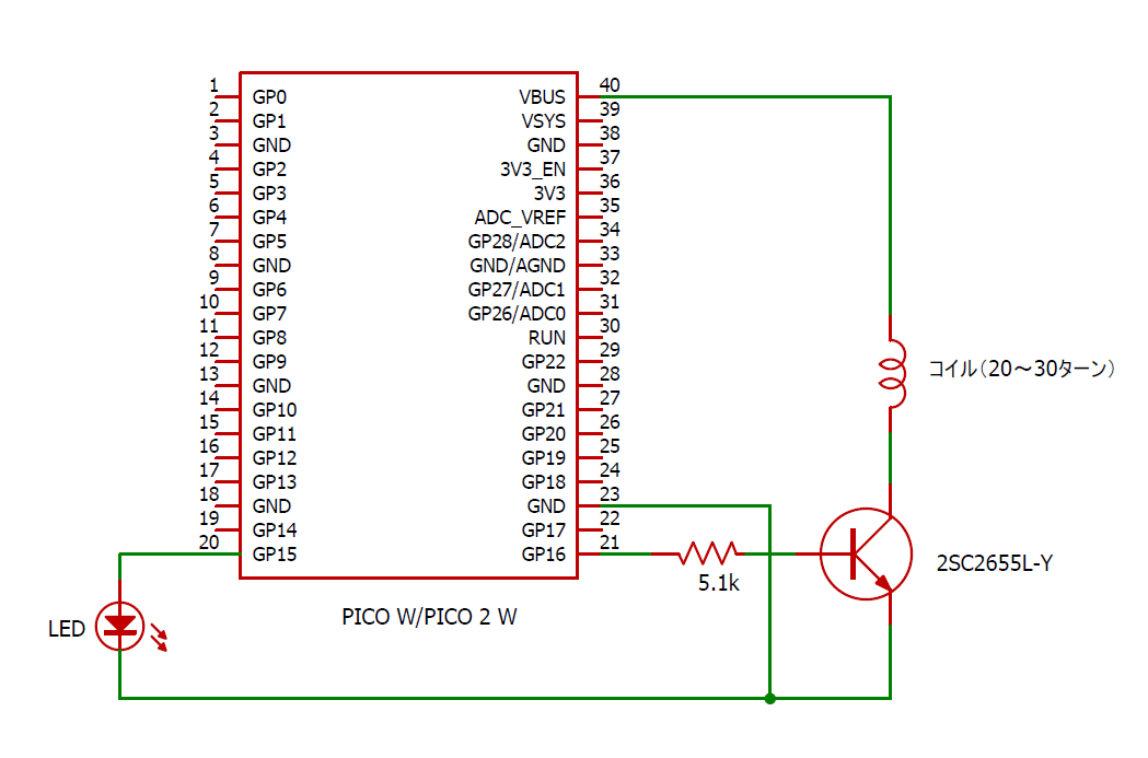 コイルは被覆銅単線をサインペンなどに20~30ターンほど巻いたものを使います。